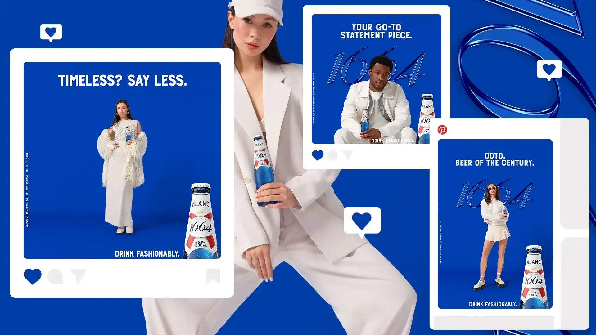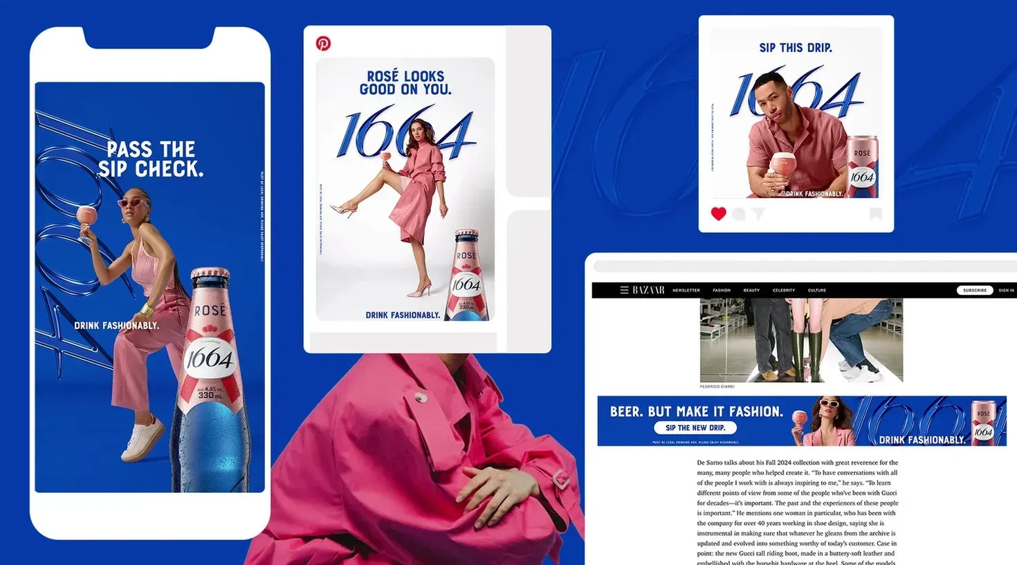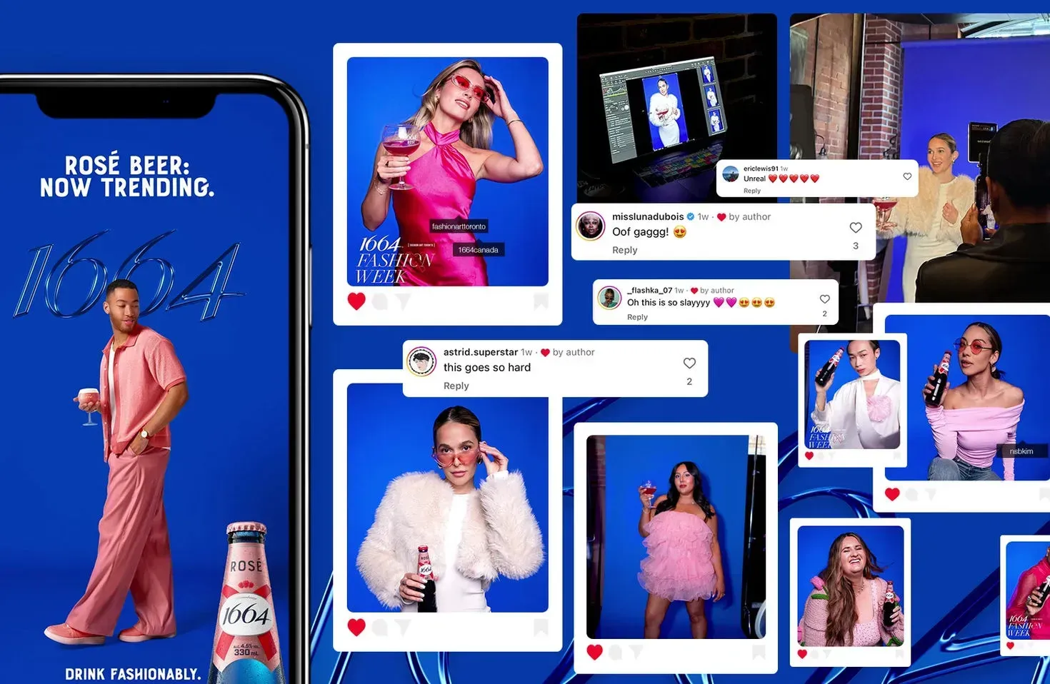Building on the momentum of the "Drink Fashionably" launch in Toronto, the campaign transitioned into the fall season by shifting focus from the vibrant pink of 1664 Rosé to the iconic blue of 1664 Blanc for Montréal Fashion Week.